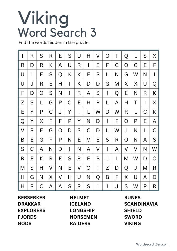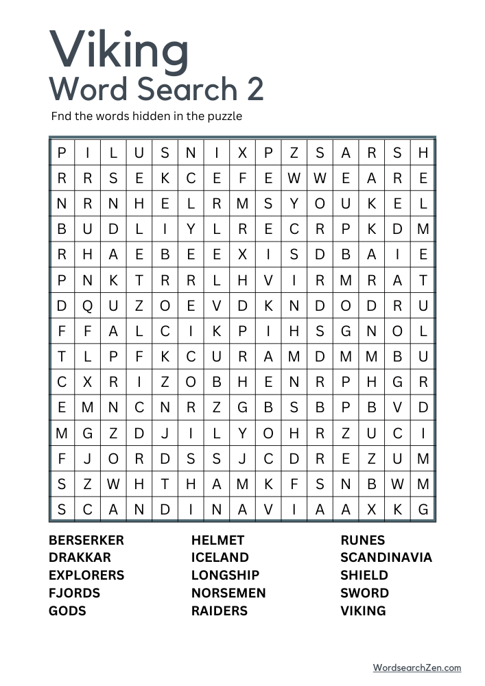 Welcome to the Viking Word Search! Embark on a thrilling journey through the age of Norse explorers and warriors with this engaging and educational puzzle. Dive into the world of Vikings with terms like “berserkers,” “longship,” and “raids,” and uncover the rich history and culture of these legendary seafarers. Whether you’re a history buff or just looking for a fun challenge, this word search is perfect for all ages. Discover the secrets of “valhalla,” explore the rugged “fjords” of Scandinavia, and learn about the “sagas” that have captivated generations. Sharpen your word-finding skills and set sail on an adventure through time with the Viking Word Search!